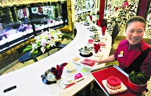 “人类已经无法阻止”的海底捞又想出了新花样,利用“视频墙”和音频系统,让亲朋好友虽然分别身处京、沪两地也能“同桌”用餐,在觥筹交错中齐聚一堂。昨日,本报记者赶在第一桌客人到来之前,探访了海底捞在北京王府井店新设的“智真包间”。