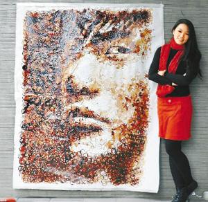 事实上,康怡并不是第一次用这种“非传统”的方式作画,她还曾用向日葵籽、辣椒酱和篮球进行创作。今年年初,她曾在上海街头用篮球蘸颜料创作了姚明的肖像画并引起了广泛关注。(欧叶)