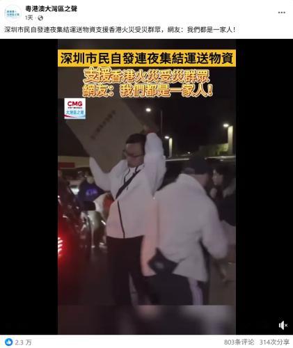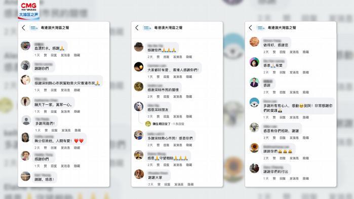 在“粤港澳大湾区之声”脸书平台,这样温暖的互动也随处可见。不少香港网友通过评论区表达对内地同胞的感谢。