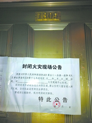家住13层的业主于先生告诉记者,前天下午,他发现1305房间的门被打开了,两个从未见过的年轻人正在隔断间内铺被褥。一问,是新来的租户。“原来他们还不知道这个房间着过火死过人,二房东太黑了!”于先生把他俩领到门口,让他们看房门上消防部门张贴的《封闭火灾现场公告》,两位年轻人当即决定退房。小区保安队长告诉记者,最近几天他经常见到拎着行李的人从1305房间出入,有搬走的,也有新来看房的。