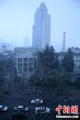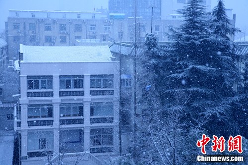 记者在南京主城区看到,大雪降落过程可谓“瞬时”,上午9时,天色昏黄阴霾,大片雪片从天空簌簌而下,10分钟后,雪停天晴,阳光普照。下午13时,大雪卷土重来,天色渐亮,40多分钟后雪停。