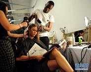 当地时间2012年9月13日,在纽约时装周的拉夫·劳伦秀场后台,造型师为一名模特进行面部按摩。当日,时装品牌拉夫·劳伦在2013纽约春季时装周上发布新品。本次时装周亦在当天落下帷幕。邓坚 摄 图片来源:新华网