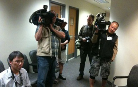 等候开庭的记者。(加拿大《环球华报》)