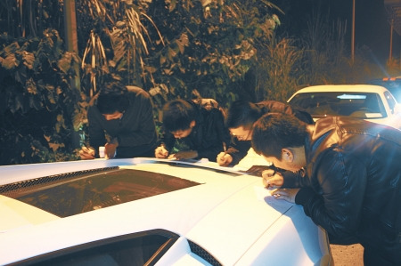 交警进行拍照取证后,责令四名驾驶员开着跑车到大队部作进一步调查处理。
