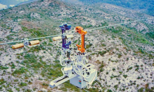 凌空高架的输电线路上,一个如猿猴般敏捷的机器人,用“双臂”在500千伏超高压线上自由“行走”,以详细检查周边电力设备的工作细节。