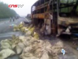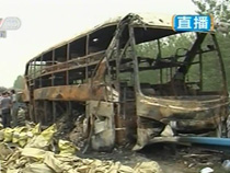 7月22日凌晨4点,一辆自威海驶往长沙的中型客车在京珠高速信阳明港段发生火灾。这辆35座的中型客车起火后燃烧,大火熄灭后客车只剩骨架。目前,已有41人在此次事故中死亡,6人受伤,其中一人伤势严重被转往159医院治疗,另外5人被送往信阳市中心医院治疗。就此事故,中新社记者连线了事发后赶往现场的同行张因祥。