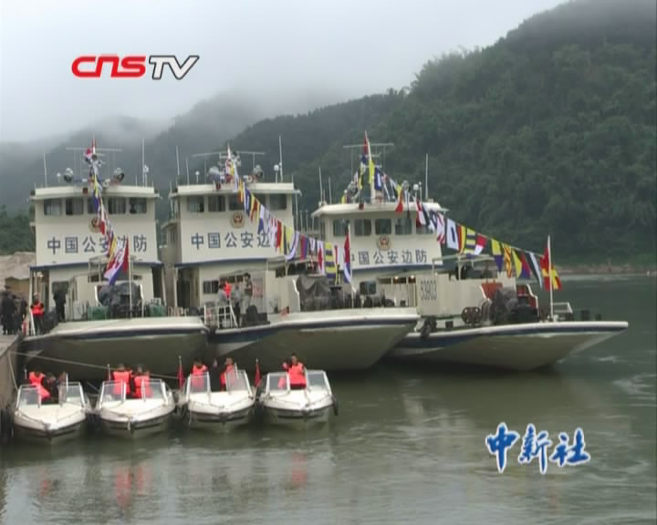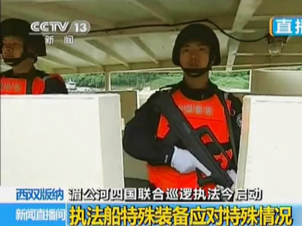 【解说】为切实保障湄公河的航运安全,11月26日在北京通过了《中老缅泰湄公河联合巡逻执法部长级会议联合声明》,根据《声明》,中、老、缅、泰四国于12月9日在关累港设立了湄公河联合巡逻执法联合指挥部,云南公安边防总队也成立了水上支队,10日与老缅泰在湄公河开展联合执法。
