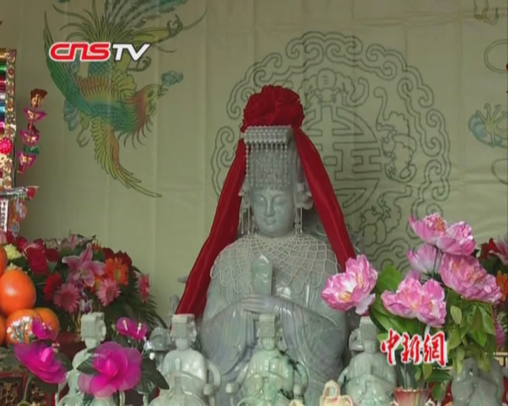 【解说】据工作人员介绍,这颗大白菜是用一块料子做成的,选材自缅甸,由广州的一个玉雕团队花3年时间雕成。现场慕名前来参观的市民络绎不绝,很多人纷纷在翡翠白菜前拍照留念。