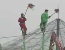 2月4日,在山西省太原市动物园的一角,一出“二鬼摔跤”的戏码引得众人驻足观看。在演出现场,两个造型夸张的小人,身穿棉袄外套,在地上互踢互绊,做厮打状,幽默风趣,逗人发笑。 【同期】二鬼表演者 过年又贴门神,这就是咱们中国的老传统,(二鬼摔跤)就是给咱们辟邪,这就是正月十五闹元宵,一年到晚,总结的意思。 【正文】二鬼摔跤是一人背驮着二鬼摔跤道具而进行表演的民间舞蹈,又叫“二娃摔跤”、“二喜摔跤”,主要流传于夏邑及周边县市民间。表演时,通过表演者腿、背、臂等综合协调动作,给观众以两个“鬼”在摔跤的外观表现。此民间舞蹈已流传上百年,现面临失传境地。 【同期】太原市民 二鬼摔跤它可能寓意着水和火,对小孩也有一种教育的意义,因为大城市的小孩一般体会不到这种民俗的概念,带小孩来,小孩就感觉咱们周边还有这么多故事。 【正文】据表演者介绍,“二鬼摔跤”看似两个人,但表演结束后,演员起身时观众才发现,原来“二鬼”是被他“穿”在身上的。