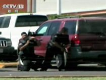 采访人物:沈阳市民(记者:大概来了多少人?)来老了人了,满大街都是,全是警察。(记者:武警还是特警?)全有,什么都有,特警 武警 警察。(记者:抓几个出来的?)抓一个,击毙一个。(当时枪声多吗?)多,就和游戏似的。