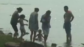 男子发现鸭子被冻湖面 跳湖破冰救援