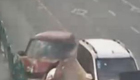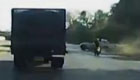 实拍汽车快速漂移躲摩托 场面惊险刺激