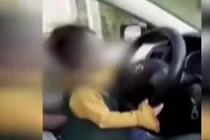 1岁女童坐父亲腿上开车 母亲在旁笑出声