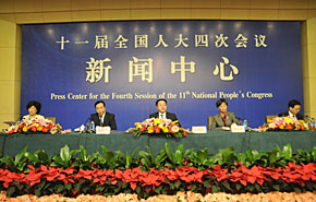 十一届全国人大四次会议于3月6日10时45分在梅地亚多功能厅举行记者会,由中华全国总工会副主席、书记处书记张鸣起,浙江省总工会党组书记、常务副主席金长征,全总基层组织建设部部长郭稳才,全总保障工作部部长邹震就构建和谐劳动关系、促进和谐社会建设答记者问。