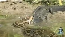 实拍:巨蟒大战食人鳄相互撕咬 都成精了
