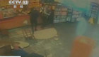 实拍司机油门当刹车反向冲入快餐店