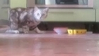 猫咪吃饭遭偷拍 将饭碗拖走躲镜头