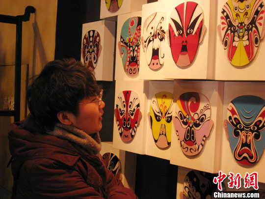 参与互动(0)图为一名大学生欣赏秦腔脸谱。崔琳 摄