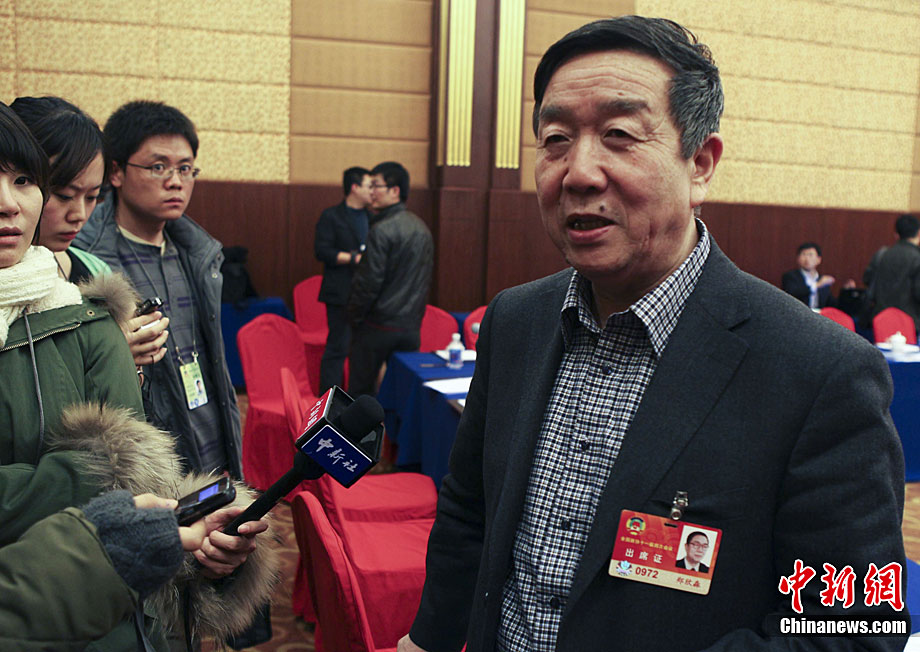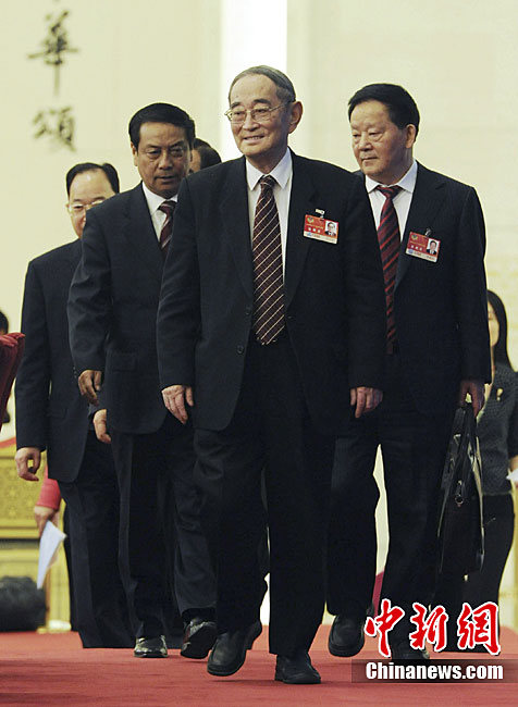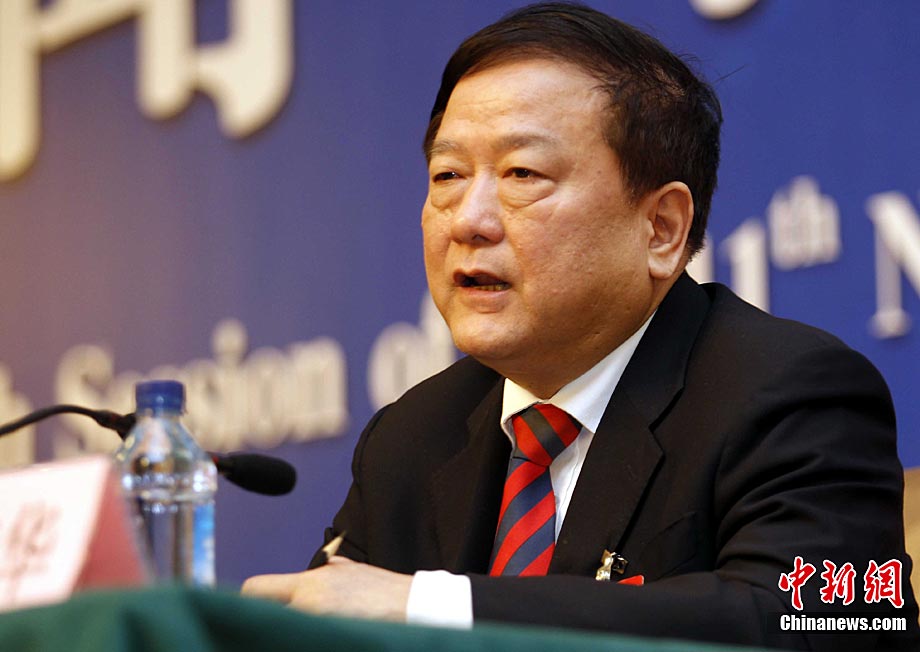 3月5日下午,中共中央政治局常委李长春参加十一届全国人大四次会议四川代表团的审议。中新社发 张冬冬 摄