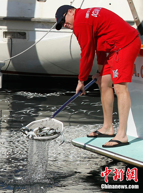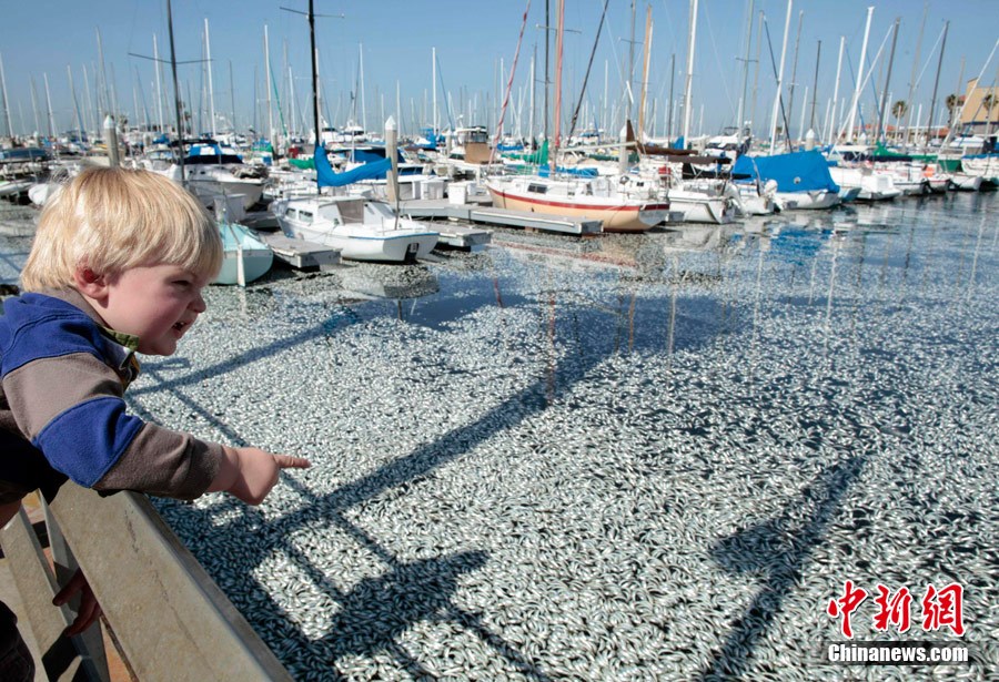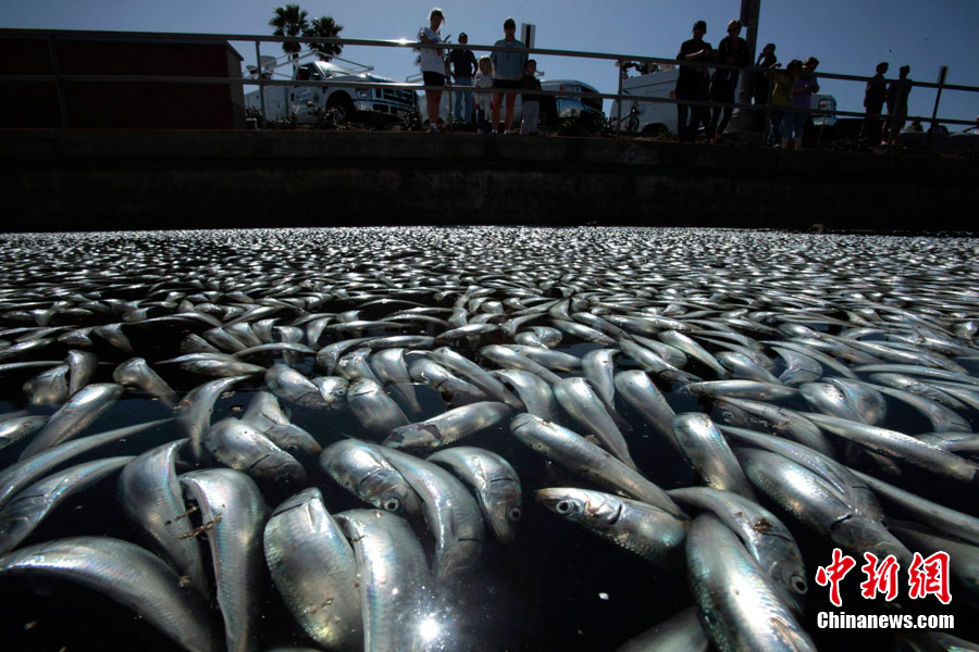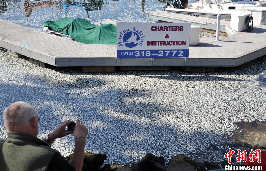 当地时间3月8日,美国洛杉矶县三大海滩美景城市之一的丽浪多市海滩突现大片死鱼,死鱼主要包括沙丁鱼、凤尾鱼和鲭鱼等,当地官员估计死鱼数量至少有数百万尾。当局正在调查死鱼原因,目前还未发现赤潮或污染的迹象,初步评估认为是缺氧所致。中新社记者 张炜 摄