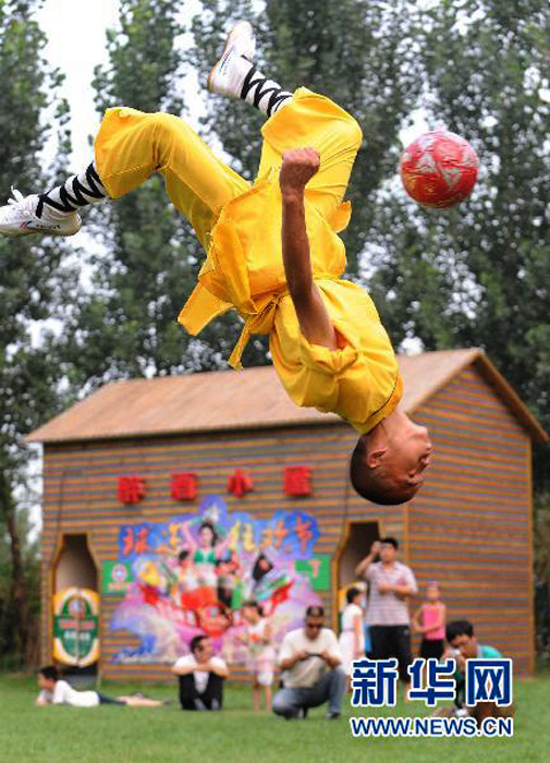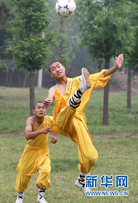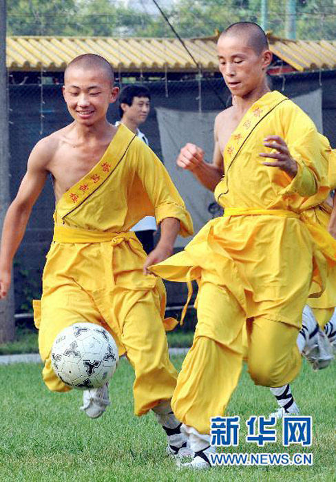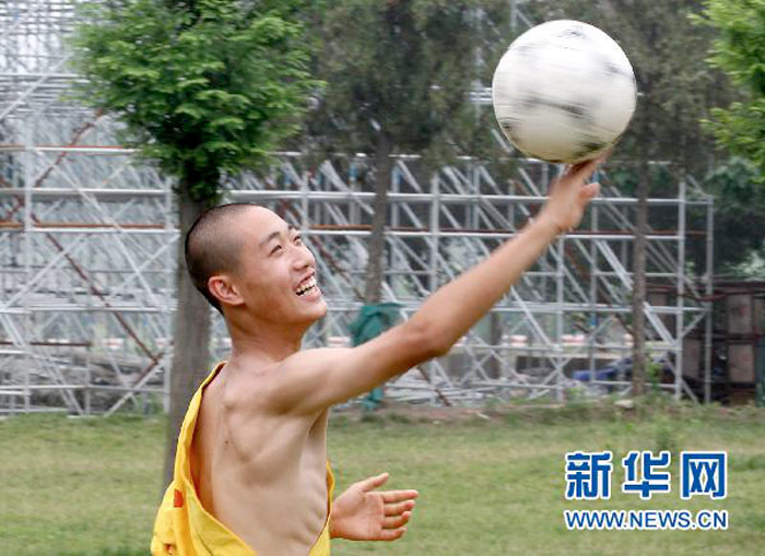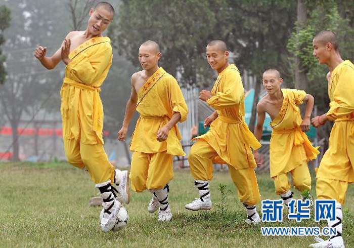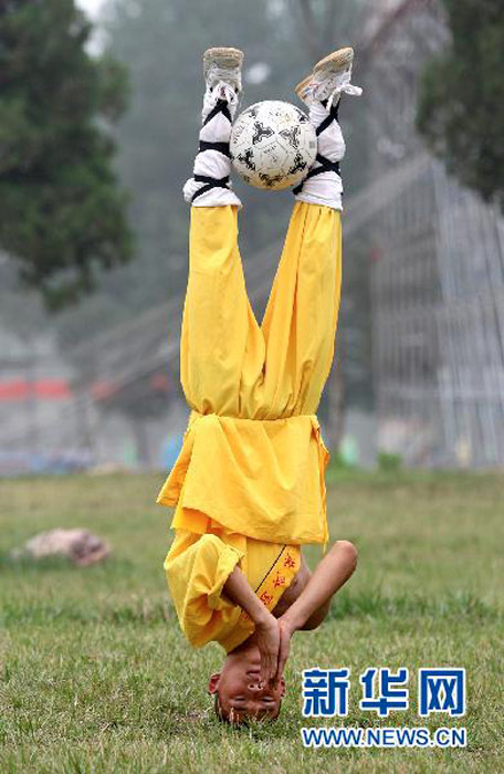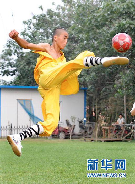 少林寺武僧团培训基地得到了中国足协的支持。半个月前,中国足协赠送给学校1000个足球。王颂 摄 图片来源:新华网