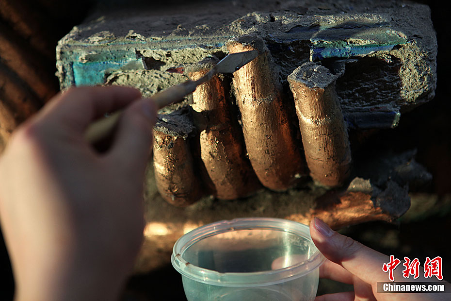 4月18日,工作人员正在进行三维激光扫描,记录造像表面金箔微观变化。当日,重庆市大足县宝顶山石刻景区内,全国石质文物保护一号工程——大足石刻千手观音抢救性维修保护工程正式启动,这也是中国参与国际古迹遗址日的主要活动标志。宝顶千手观音造像雕凿于南宋,是大足石刻中最精美、雕刻工艺最复杂,史上重修次数最多的一尊雕像,其手眼数量之多,艺术造诣之高,影响之广泛,都堪称“国宝中的国宝”。本次千手观音造像抢救性保护工程预计需要两到三年时间,其研究成果也将为类似文物的修复提供借鉴。罗国家 摄 图片来源:CNSPHOTO