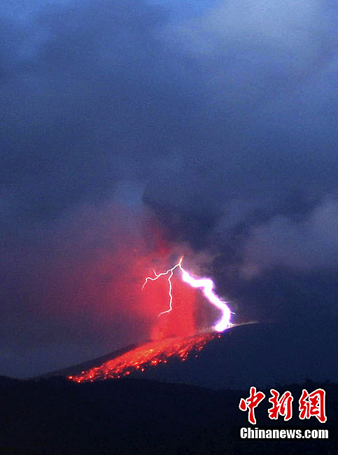 4月18日,日本雾岛新燃岳火山再次发生小规模喷发,山顶惊现“火山雷”。据日本气象厅称,这是雾岛新燃岳继9日发生小规模喷发后,本月第二次喷发。图片来源:CFP视觉中国