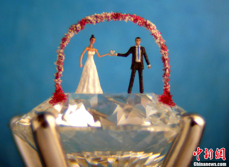 5月18日晚,英国著名微雕艺术家Willard Wigan创作的全球首个最珍贵罕见的微雕美钻艺术品“星之恋人”在上海重磅揭幕,Willard Wigan先生的艺术作品以比血细胞还要细小而闻名,堪称“世界第八大奇迹”。当晚,香港艺人郭富城和杨采妮牵手登场,演绎“星之恋人”真人版。潘索菲 摄