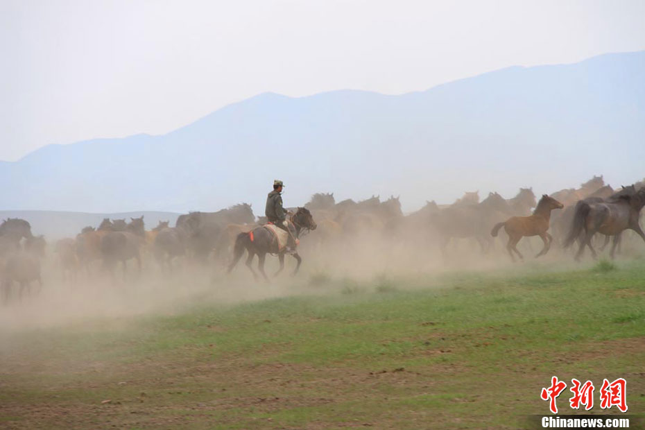盛夏是甘肃山丹马场草原一年中最美的季节,蓝天白云下,绿毯似的草原上骏马奔驰,金黄的油菜花铺向天边构成美丽的画卷。山丹马场是目前世界上历史最悠久,亚洲规模最大,世界第二大马场。马场地势起伏和缓,水草丰茂,是马匹繁衍、生长的天堂。早在3000多年前,这里就已养马。 陈礼 摄