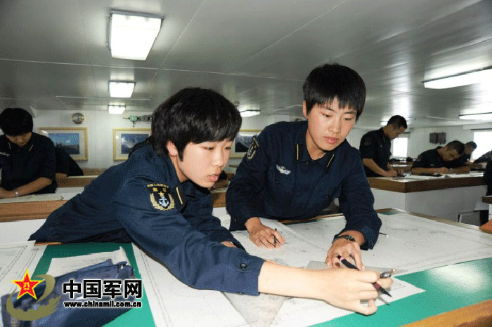 中国军网记者李学勇报道,今天(8月10日),随中国海军训练舰编队访问俄罗斯、朝鲜的大连舰艇学院首批舰艇指挥专业女学员,在航行途中进行了天文航海实习考核,合格率达100%。这次出航是她们第一次随舰进行远海实习训练。图片来源:中国军网