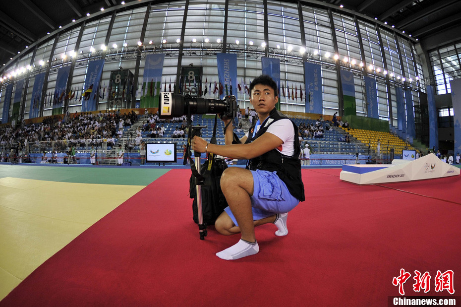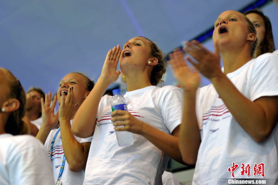 礼仪小姐是深圳大运会颁奖仪式上一道靓丽的风景线。图为8月13日礼仪小姐们在比赛间隙刻苦训练。中新社发 金硕 摄