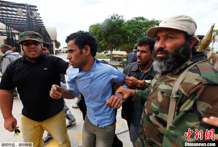 当地时间10月10日,利比亚执政当局武装称,他们已将苏尔特的利比亚执政当局武装人员逼到该市市中心地带。图为利比亚执政当局武装在进攻苏尔特市中心过程中向亲卡扎菲武装开火。