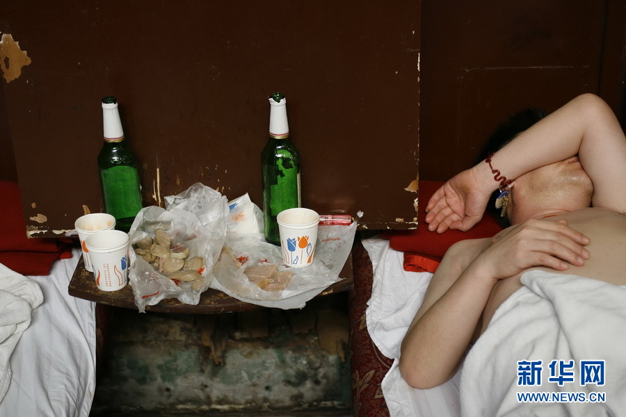 67岁的张山便是这里的老澡客,他每天的生活有规律而简单:上午唱红歌,中午泡澡一直到晚上吃晚饭。为了这简单的生活,他甚至两年前把家搬到了附近,他说“我每天都得来这泡澡,一来身体舒服,最主要的是这里有我的朋友、有我能聊天的人。”张山从小到大经常光顾澡堂,不过一个接一个,它们都被高级宾馆里现代的spa中心所取代,这些spa中心也定义了现代北京。新的浴室每位顾客收费180元甚至更高,而双兴堂洗一次澡仅需8元。“你以为我愿意从城里搬到这里来洗澡么,说句不好听的,我是迫不得已。城里的老澡堂眼见着就都没了,贵的我洗的起么?” 图片来源:新华网