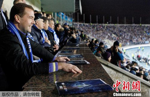 当地时间2011年11月9日,俄罗斯莫斯科,俄罗斯总统梅德韦杰夫在克里姆林宫与博友们见面交流,其美女粉丝团也到场助阵。