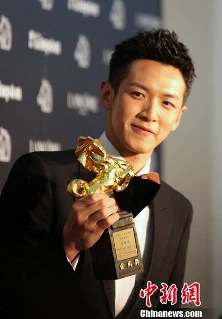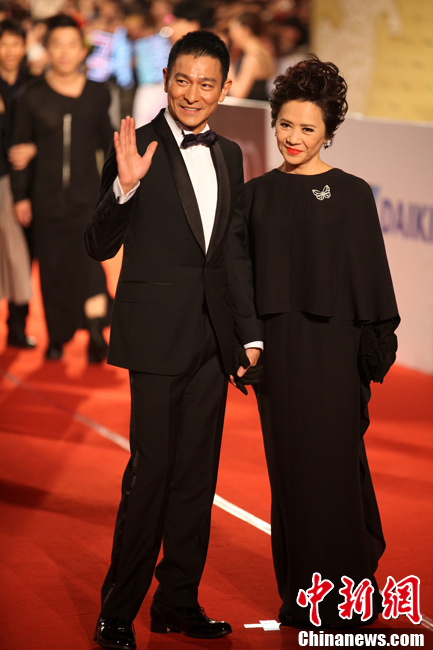 11月26日晚,台湾第48届金马奖颁奖典礼在新竹市文化局演艺厅举行,两岸三地及海外影人躬逢其盛,众奖项各有归属。 图为时隔多年、二度荣膺最佳男主角的香港著名影星刘德华。董会峰 摄