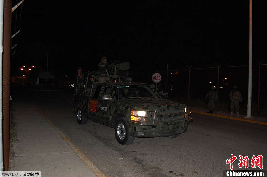 1月4日,墨西哥北部塔毛利帕斯州一所监狱发生囚犯集体殴斗事件,造成至少31人死亡,13人受伤。据悉,发生囚犯殴斗事件的监狱设计容纳囚犯2000名,但目前却关押着超过3000名囚犯。图为士兵在该监狱外守卫。