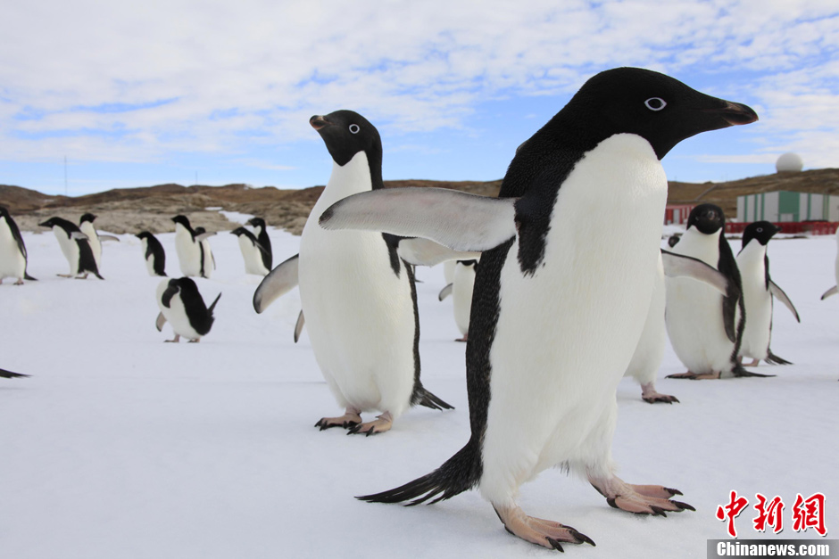企鹅“探访”南极中山站