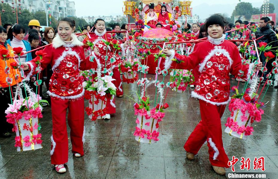 2月5日,在西安市小雁塔举行的龙年元宵庙会上,来自中国各地的汉服爱好者们身着汉服,跳傩舞、驱傩、提灯夜游走百病,上演了一场庙会上的“穿越”。吸引了大量游人驻足观看。图为汉服美女们。张远 摄