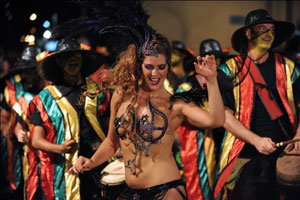 当地时间2月9日,乌拉圭蒙得维的亚,热辣美女在狂欢节上激情狂舞。