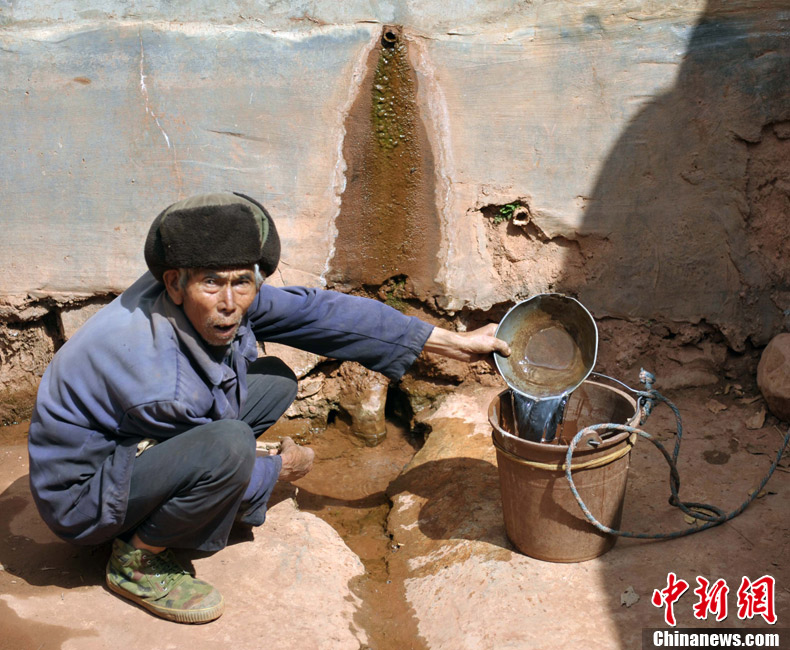 3月9日,四川会理杨家坝乡庄房村支部书记刘华友说“因干旱,地里农作物已换成耐旱的芒果树。” 会理县杨家坝乡庄房、绿林、新安傣族乡是2008年“8.30”地震重灾区,从2011年8月以来,滴雨未降,田地溪流干裂断流。“我们生活用水全靠去城河挑,来回一趟要两个多小时,挑一趟水太困难了。”刘华友说,村里的庄稼已三年无收成了。去年村里刘云中家种的40亩豌豆苗,因为干旱,只收了不到200斤豌豆,连种子钱都不够。从山下挑回来的水,连基本生活都无法保证,村民们更舍不得拿来浇地了,村民们情愿将地荒着,也不愿意再种。村里的大多数农作物已枯死,唯一还活着的就只有芒果树,现在正是开花挂果时节急需浇水。