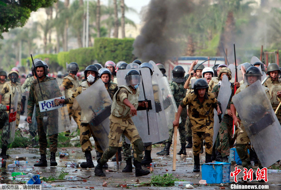 5月4日,在埃及首都开罗,示威者与军队士兵发生冲突。埃及首都开罗数万民众4日再次分别聚集在开罗两大广场,对日前在国防部附近发生冲突,导致大量人员伤亡的事件表示愤怒,要求军方如期交权。驻守在国防部的军警与示威民众间当天再次爆发冲突,导致59人受伤。