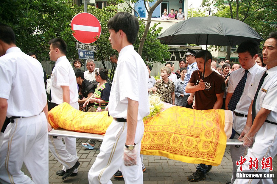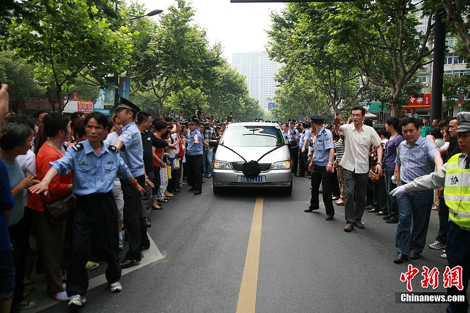 6月4日下午,杭州“最美司机”吴斌出殡,数万民众自发而来为送别最后一程。5月29日,杭州长运客运二公司快客司机吴斌驾驶大客车从无锡返回杭州。大客车在高速公路上正常行驶途中,一块铁块从空中飞落击碎车辆前挡风玻璃后砸中吴斌腹部和手臂,导致其三根肋骨被撞断,肝脏被击碎。正值危急关头,吴斌强忍剧痛,镇定地完成换挡、刹车等一系列安全操作,将车缓缓靠边停好,开启双跳灯、打开车门,安全疏散旅客,确保了大客车上24名旅客安然无恙,而他自己却因伤势过重去世。李晨韵 摄