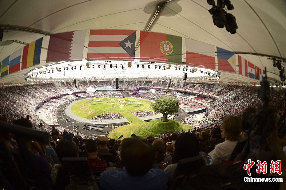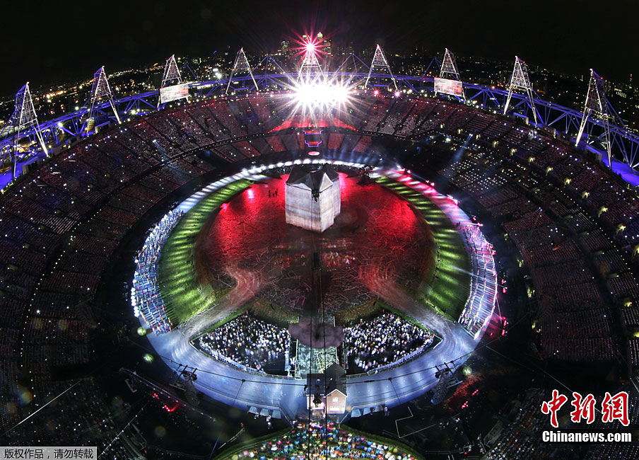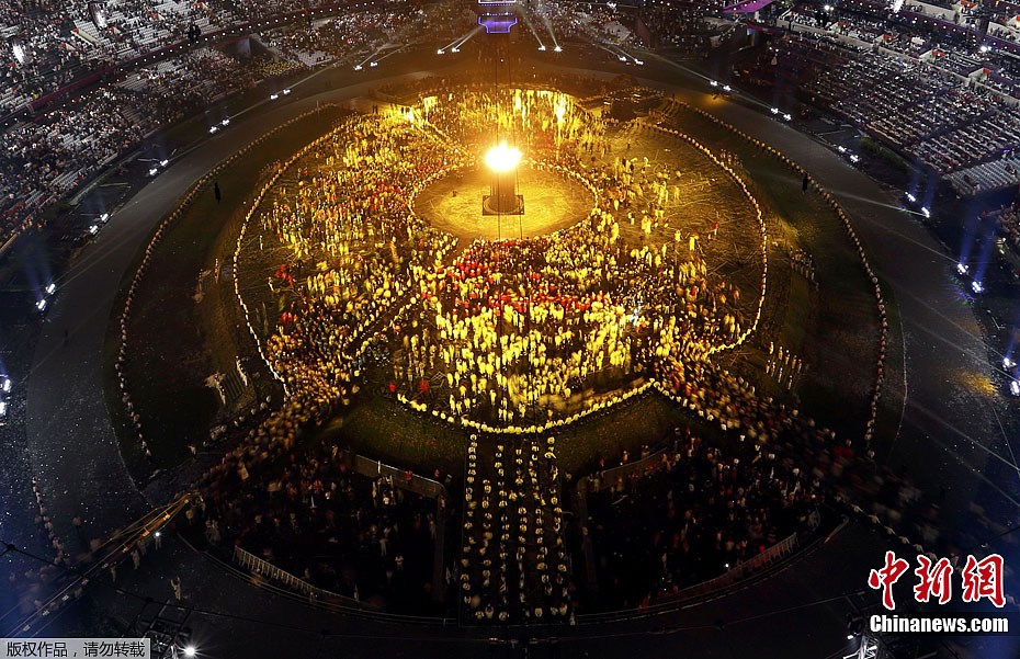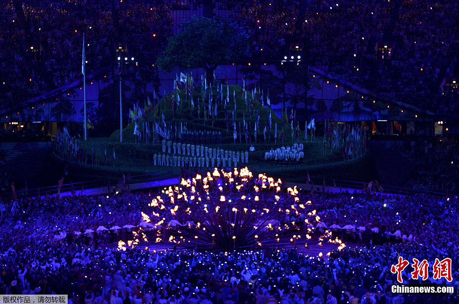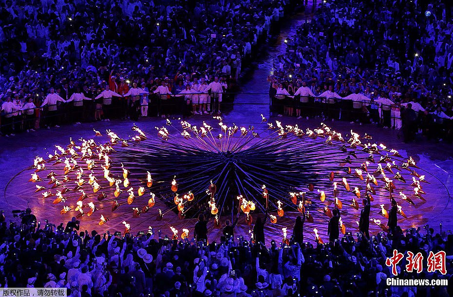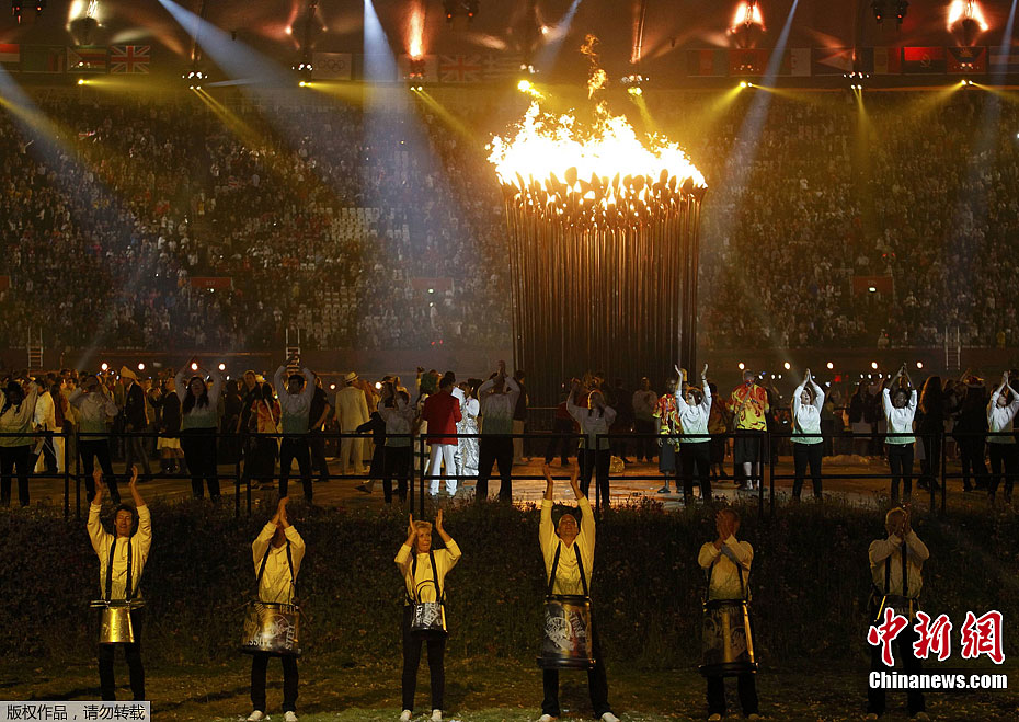 当地时间7月27日晚,第三十界夏季奥运会在伦敦奥林匹克公园主体育场“伦敦碗”开幕。图为开幕式上点燃圣火。记者 廖攀 摄