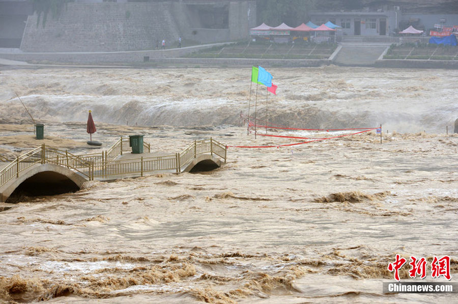8月29日,黄河壶口瀑布景区,金色的主副瀑布连成一片,形成特大瀑布群。河水奔流而下,洪波怒嚎,激流翻腾,景象极为壮观,远远望去宛如一条奔流激荡的金色长龙俯卧在十里龙槽里,让游人叹为观止。刘洋 摄 图片来源:东方IC 版权作品 请勿转载