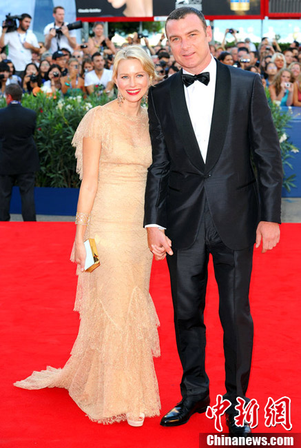 当地时间2012年8月29日,意大利威尼斯,第69届威尼斯电影节开幕。图为娜奥米·沃茨夫妇十指紧扣恩爱亮相。图片来源:东方IC 版权作品 请勿转载