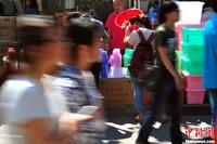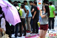 近日,全国各高校新生纷纷入校报到,初入“象牙塔”的新生们在家长的陪同下采购生活必需品,繁忙热闹的景象仿佛是在“办年货 赶大集”。图为北京大学校园内电话卡销售点门前的学生们。中新网记者 金硕 摄