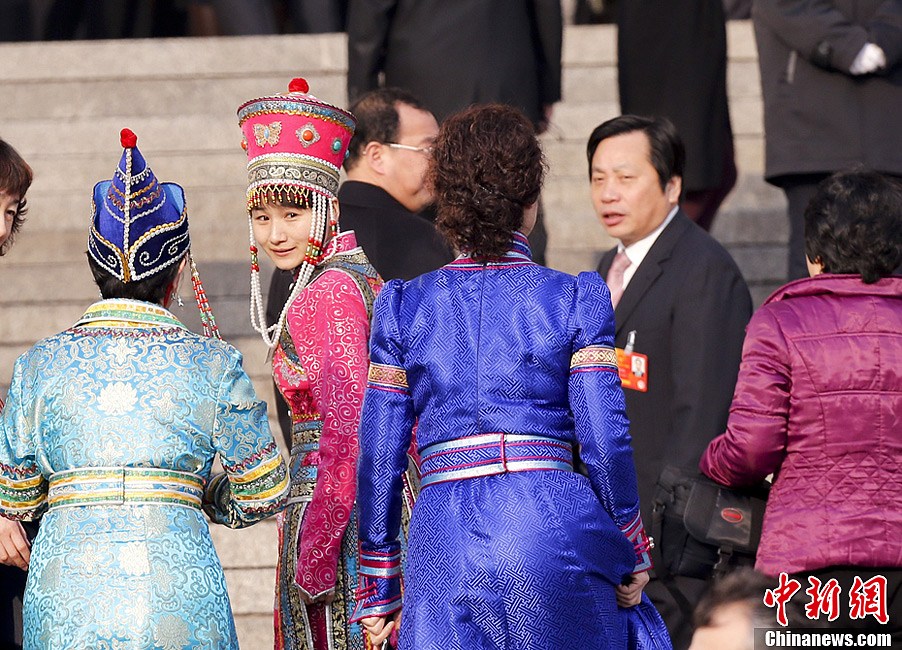 3月5日上午,第十二届全国人民代表大会第一次会议在北京人民大会堂开幕。少数民族代表盛装出席。中新社发 杜洋 摄