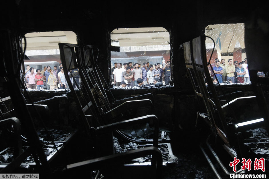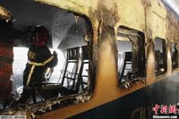 孟加拉国一列停靠站台的城际火车遭焚毁