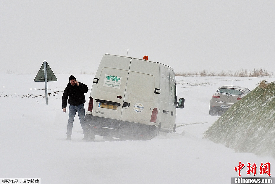 大雪袭扰欧洲多国——法国近五百辆汽车被困
