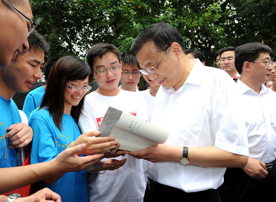 2011年7月5日,李克强在安徽考察经济社会发展情况时,与中国科技大学学生们亲切交流。 饶爱民 摄